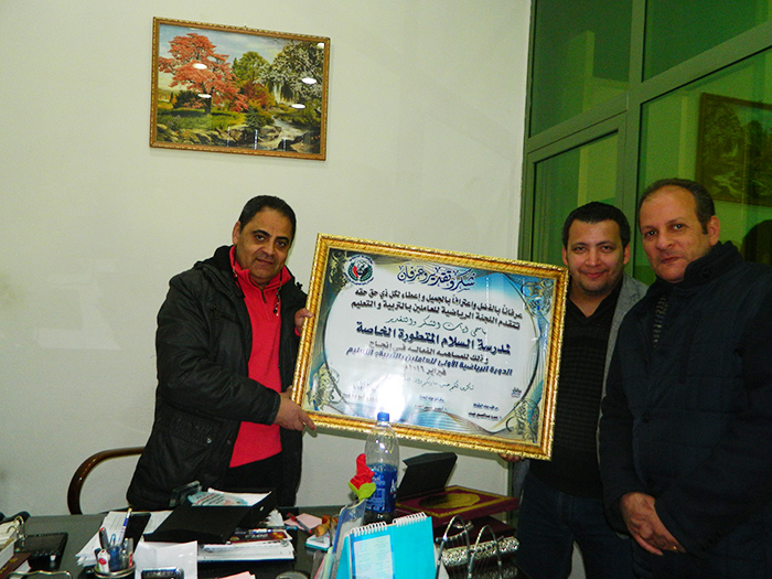على مستوى مديرية التربية والتعليم وقد قام الاستاذ / سيد شحاتة موجة التربية المسرحية بتسلم السيدة الفضلى أ / نثرين فكتور وكيلة المرحلة الابتدائية اليوم السبت 27/2/2016 شهادة تقدير بمناسبة هذا الفوز